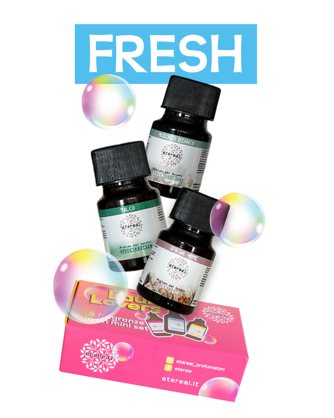Grazie all'alta concentrazione di essenza profumata e oli essenziali naturali, i profumatori per bucato Etereal donano ai tessuti un profumo intenso e a lunga durata.