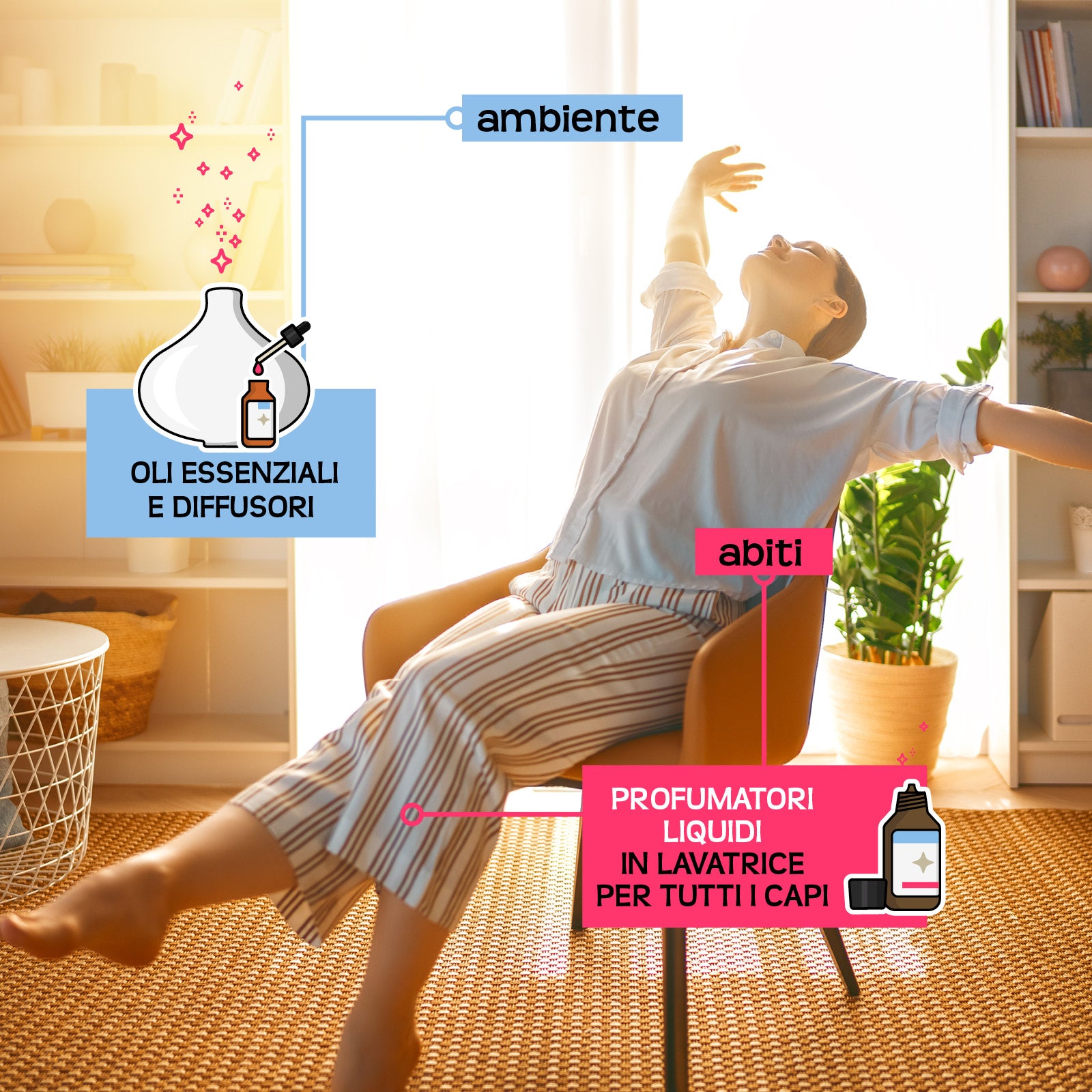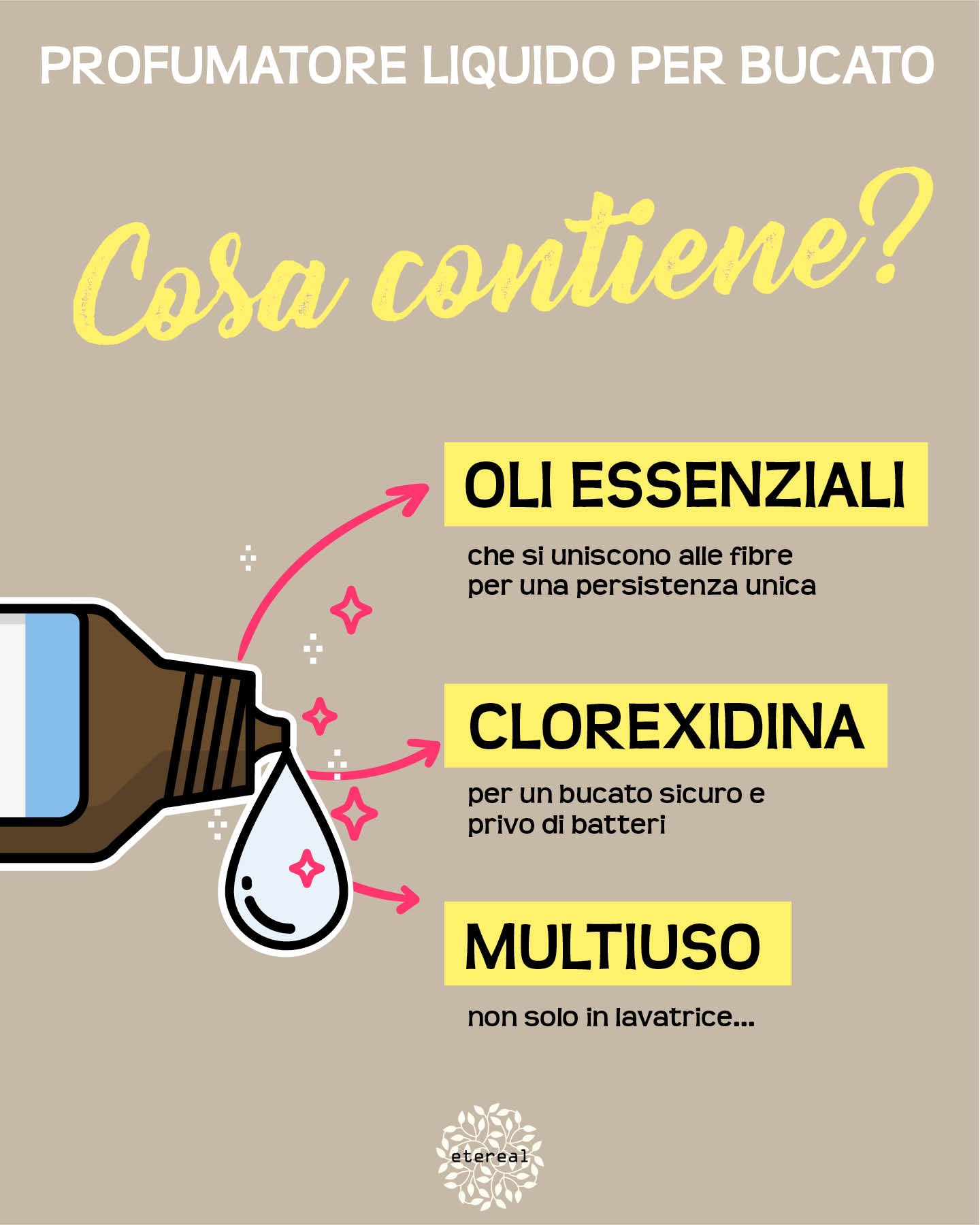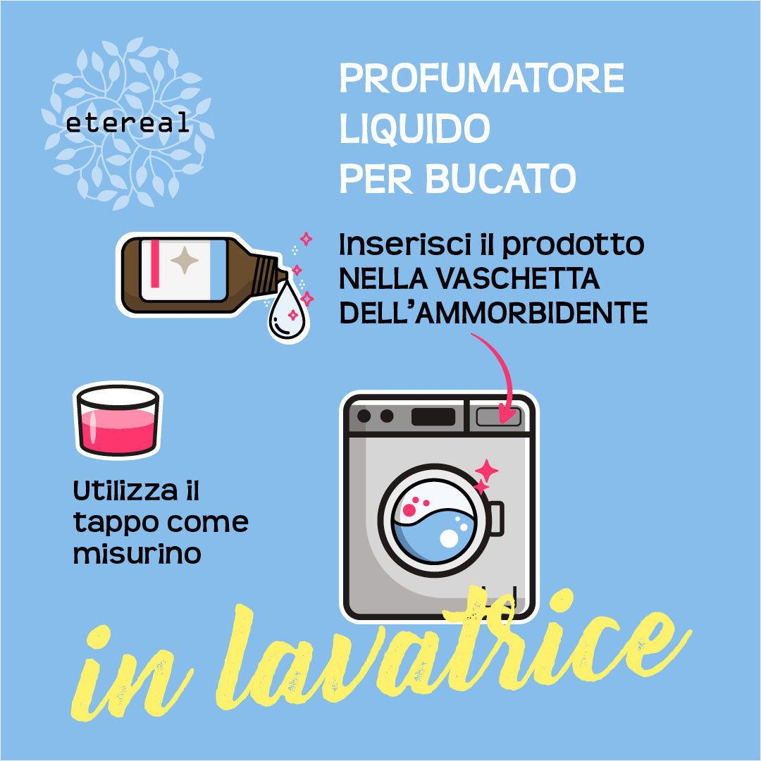 Grazie all'alta concentrazione di essenza profumata e oli essenziali naturali, i profumatori per bucato Etereal donano ai tessuti un profumo intenso e a lunga durata.
